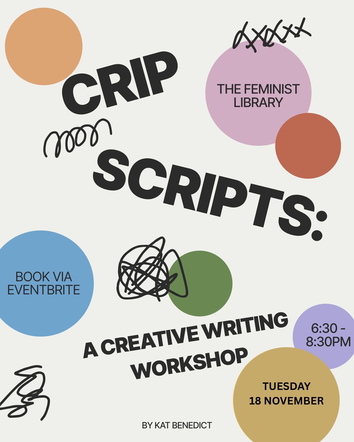 Together, we’ll read texts that defy neat arcs of suffering and recovery, and experiment with our own modes of writing that make space for repetition, pain, interruption, pleasure, slowness, refusal, and transformation. Grounded in the principles of narrative cripping—a practice of destabilising normative storytelling structures—this workshop invites participants to write from the porous edges of their experiences, and to honour forms of knowledge produced through altered states, medical trauma, care entanglements, and crip time.