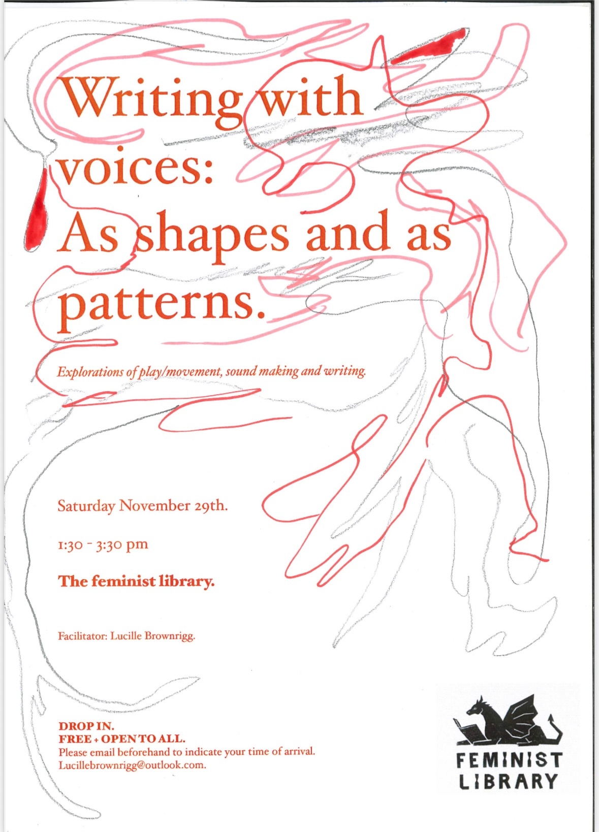 Facilitator: Lucille Brownrigg DROP IN. FREE + OPEN TO ALL. Please email beforehand for an idea of numbers Lucillebrownrigg@outlook.com.